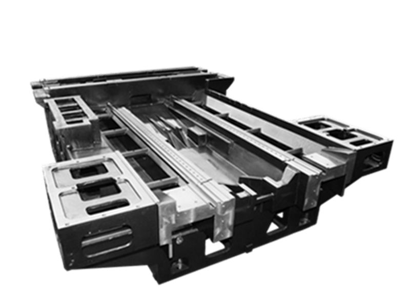 一體式鑄造T型床身,內(nèi)部布置M型加強(qiáng)筋,提供強(qiáng)力切削所需要的高剛性結(jié)構(gòu),三軸導(dǎo)軌采用重載滾柱導(dǎo)軌支撐結(jié)構(gòu),從而使機(jī)床得到高剛性和長(zhǎng)久穩(wěn)定的精度。
